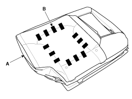 Disconnect the seat back cover (A) from the seat back frame (B).