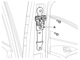 After loosening the mounting bolt, then remove the center upper pillar trim (A) .