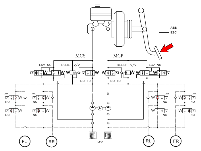 of the four wheels. And, the ECU judges whether the ABS/EBD should be