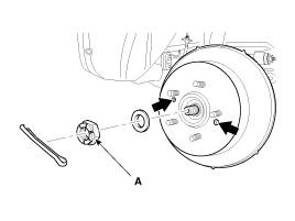 Remove castle nut (A) from the front hub under applying the break.