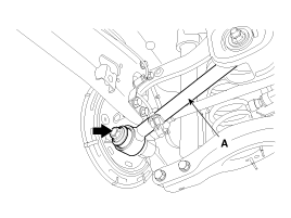 Push the rear axle carrier outward and separate the driveshaft (A) from the axle hub .