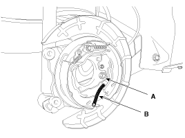 Remove the parking brake cable (B) from the brake shoe (A).