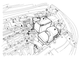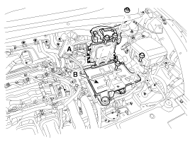 Disconnect the ECM connector and then remove the ECM (A) and the battery tray (B).