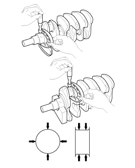 If the proper clearance cannot be obtained by using the appropriate larger or smaller bearings, replace the crankshaft and start over.