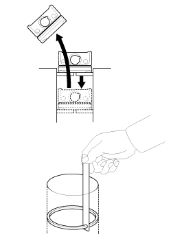 Before pressing the piston pin, apply a coat of lubricant oil to the piston pin outer and connecting rod.