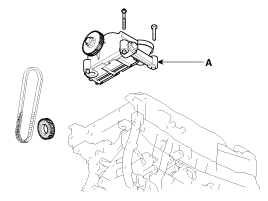Install the balance shaft chain hydraulic tensioner (A) then remove the stopper pin.