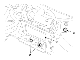 Remove the mounting bolts (A) and a nut (B), and then remove the ECM (C).