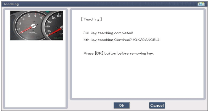 The attempt to repeatedly teach a key, which has been taught already during the same teaching cycle, is recognized by the PCM(ECM). This rejects the key and a message is sent to the tester.