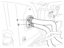 Disconnect the inlet (C) and outlet (D) heater hoses from the heater unit.