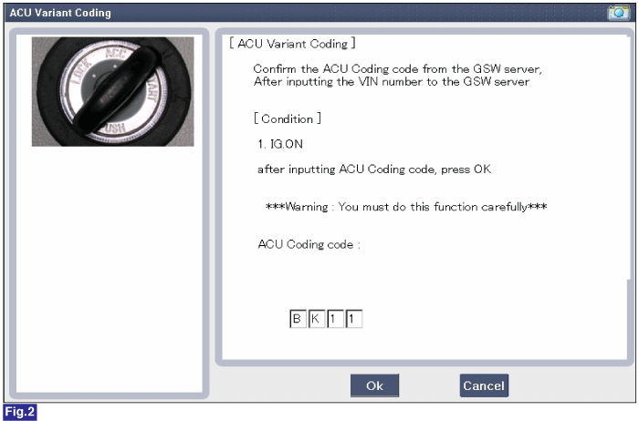 If the variant coding is failed, DTC B1762 (ACU Coding Error) will be displayed and the warning lamp will be turned on.