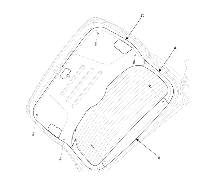 After loosening the mounting screws, then remove the tailgate trim (C) and side trim(A).