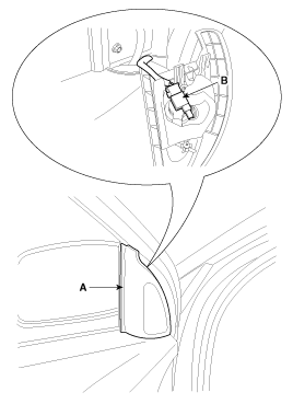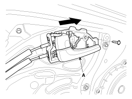 After loosening the mounting screws, then remove the door inside handle housing (B).