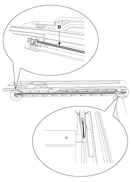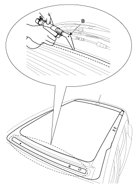 Open the space between chassis and panoramaroof using flathead screwdriver, and then cut the sealant of rear using a tool (09816-2P121, 09816-2P122) (B).