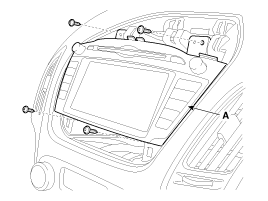 Using a screwdriver or remover, remove the crash pad center panel (A).
