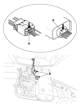 Disconnect the cover (A) and ECM room mirror connector (B).