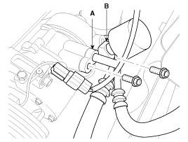 Disconnect the ground cable, and then remove the transaxle mounting bracket bolt (A).