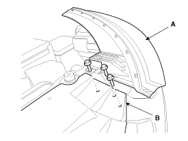 Remove the head lamp (A) after loosening the nuts of interfered radiator upper cover (B).