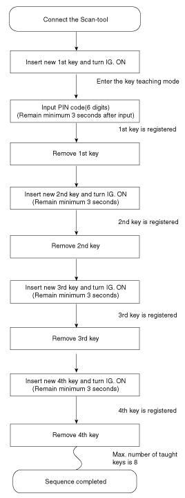 If the PCM(ECM) status and the key status do not match for teaching of keys, the tester procedure will be stopped and a specific fault code will be stored at PCM(ECM).
