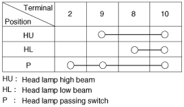 With the multi function switch in each position, make sure that continuity exists between the terminals below.