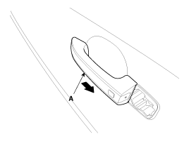 Remove the outside handle (A) after loosening the outside handle mounting screws.