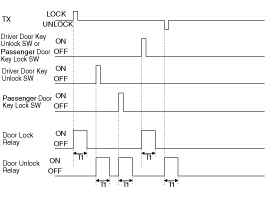 If ALL DOOR UNLOCK and TRUNK LID is OFF → ON, Trunk Release Relay is ON during T1.(SMK option)