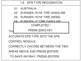 When the EPS type recognition is completed, the massage will be displayed on the screen as follows.