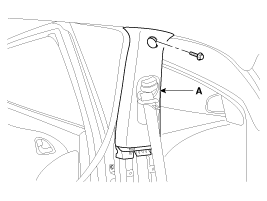 After loosening the mounting bolt, then remove the center upper pillar trim (A) .