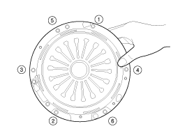 Remove the clutch cover bolts. Not to be bent or twisted, loosen them in diagonal directions.