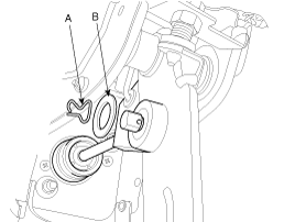 Disconnect the push rod from the master cylinder by removing the snap pin (A) and washer (B).
