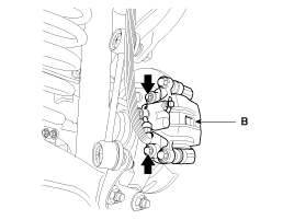 Remove the brake caliper mounting bolts , and then place the brake caliper assembly (B) with wire.
