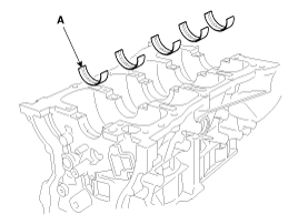 Align the bearing claw with the claw groove of the cylinder block, push in the 5 upper bearings(A).