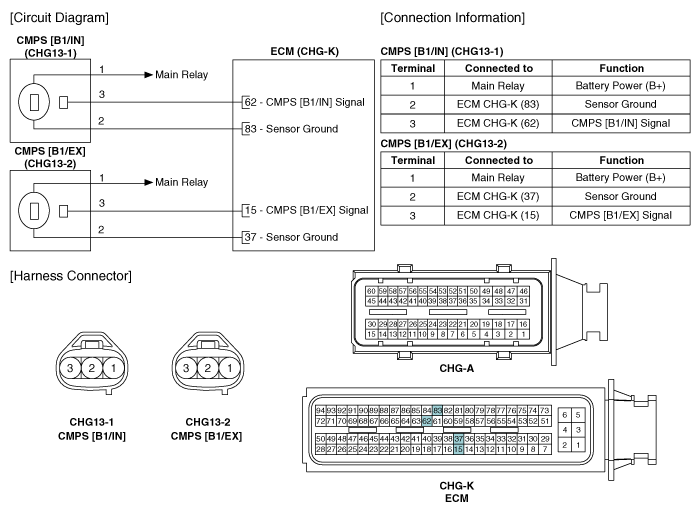TUCSON(LM) >2011 > G 2.4 DOHC > Fuel System > Engine Control System > Camshaft Position Sensor (CMPS)>Schematic Diagrams