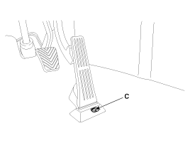 Remove the installation nuts (B), the bolt (C) and then remove the accelerator pedal module.