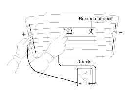 Turn on the defogger switch and use a voltmeter to measure the voltage of each heater line at the glass center point. If a voltage of approximately 6V is indicated by the voltmeter, the heater line of the rear window is considered satisfactory.