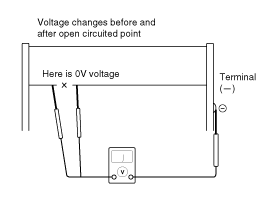 To check for open circuits, slowly move the test lead in the direction that the open circuit seems to exist. Try to find a point where a voltage is generated or changes to 0V. The point where the voltage has changed is the open-circuit point.