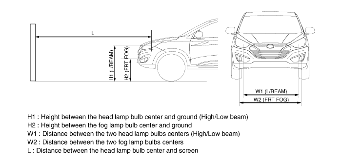 The front fog lamps should be aimed as the same manner of the head lamps aiming.