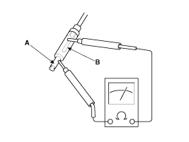 Check for continuity between the center pole (A) and outer pole (B) of antenna cable. There should be no continuity.