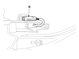After disconnecting the smart key unit connector (A), loosen the smart key unit mounting bolts, and remove the smart key unit (B).