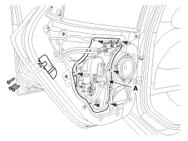 Carefully adjust the glass (A) until you can see the bolt, then loosen them. Separate the glass from the glass run and carefully pull the glass out through the window slot.