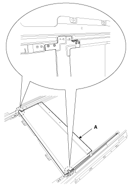 Remove the mechanism rail assembly loosening the mounting screw, and then remove the mechanism rail assembly (A).