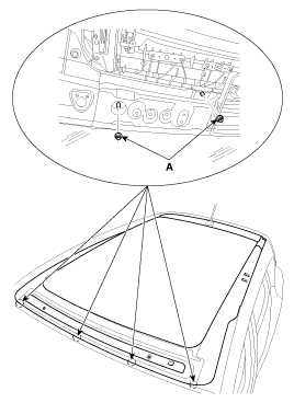Open the space between chassis and front rixed glass using flathead screwdriver, and then cut the sealant of rear and side using a tool (09816-2P130) (A).