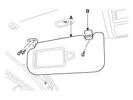After loosening the mounting screws, then remove the sunvisor (A) and retainer (B).