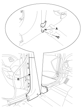Remove the center lower pillar trim (B).
