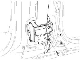 After raise the lower anchor cover (A), loosen the lower anchor (B) mounting bolt.