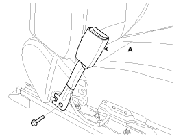 After loosening the mounting bolt, then remove the front seat belt buckle (A).