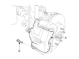 Loosen the guide rod bolt (B) and pivot the caliper (A) up out of the way.