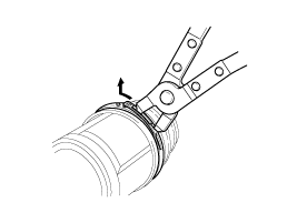 Using a snap ring plier or flat-tipped (-) screwdriver, remove the circlip (A).