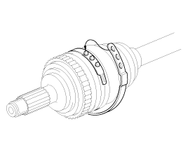 Remove the both boot clamps from the transaxle side VTJ case. Using a flat-tipped (-) screwdriver, remove the both clamps of the transaxle side.