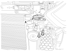 Remove the radiator mounting bracket (A) and then pull the radiator upper from vehicle.