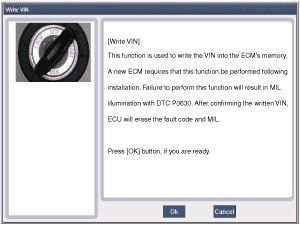 Before inputing the VIN, confirm the VIN again because the programmed VIN cannot be changed.